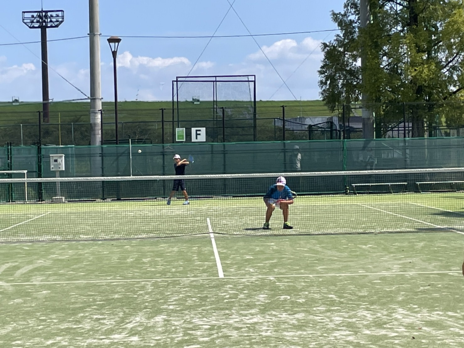 時折、爽やかな風が吹く絶好のコンディションの中、この日も芝ジュニアの選手たちは元気いっぱい!常に忍法ニコニコの術を繰り出し、心からソフトテニスを楽しむ姿が見られました。それが一番大切なことですよね。